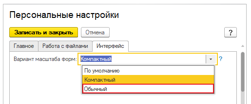 2. Во вкладке «Интерфейс» вариант масштаба форм выбрать «По умолчанию».