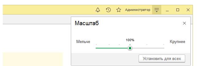 6. В данном окне, изменяя индикатор, меняется масштаб только той страницы, которая открыта. Если нужно установить данный масштаб для всего интерфейса программы, нужно нажать на кнопку «Установить для всех»