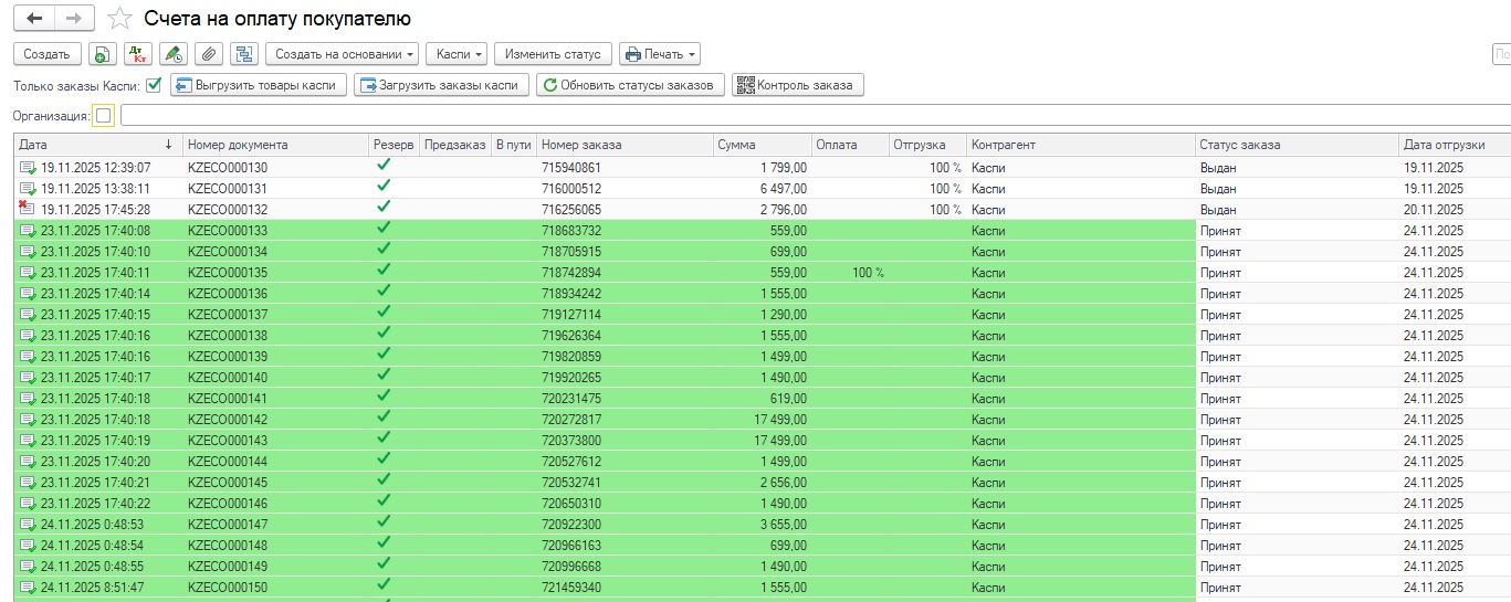 Интеграция 1С Бухгалтерия для Казахстана с KASPI